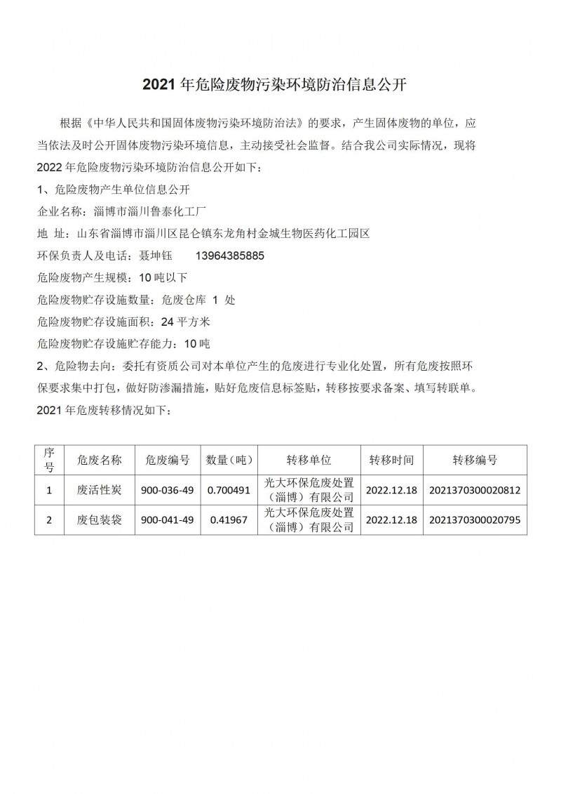 2021年危險廢物污染環境防治信息公開